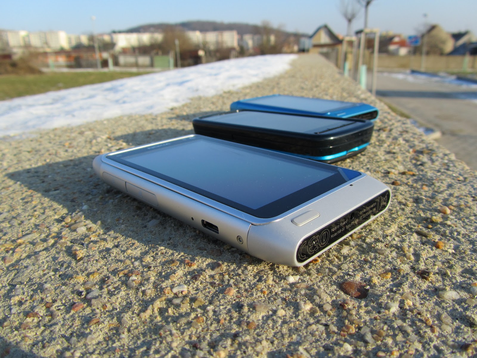 Three colours of the new Nokia N8 and comparsion to her older sister 5800